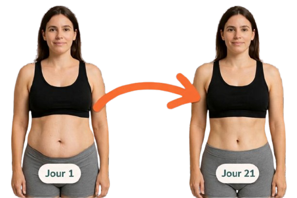 Il te suffit de suivre les 3 étapes du protocole de 21 jours pour dire adieu au ventre flasque après ta grossesse :